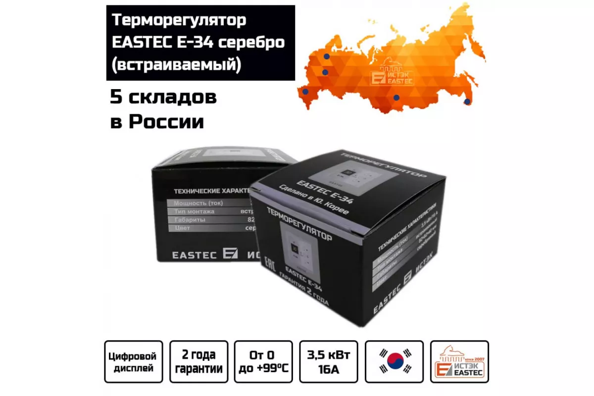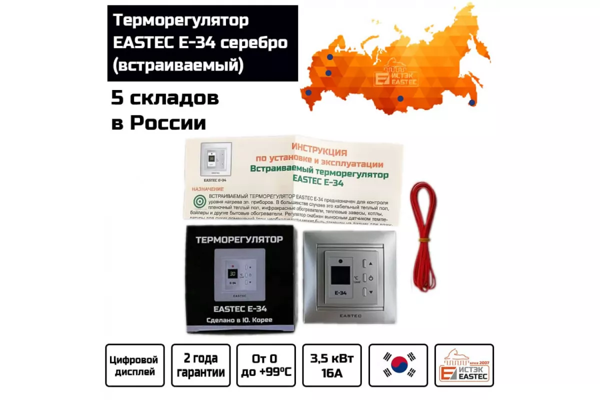 Терморегулятор EASTEC E-34 серебро (встраиваемый 3,5 кВт) — это надежное и стильное решение для управления системами электрического теплого пола. Благодаря своему современному дизайну и функциональности, он обеспечивает комфорт и энергоэффективность в вашем доме.​