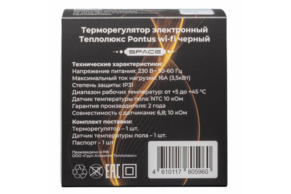 Терморегулятор поддерживает комфортную температуру обогреваемой поверхности и обеспечивает рациональный расход электроэнергии. Терморегулятор обеспечивает управление по двум датчикам температуры: пола и воздуха, как одновременно, так и по отдельности. Терморегулятор может осуществлять управление водяными теплыми полами при использовании термоголовки нормально закрытого типа с управлением 230В.