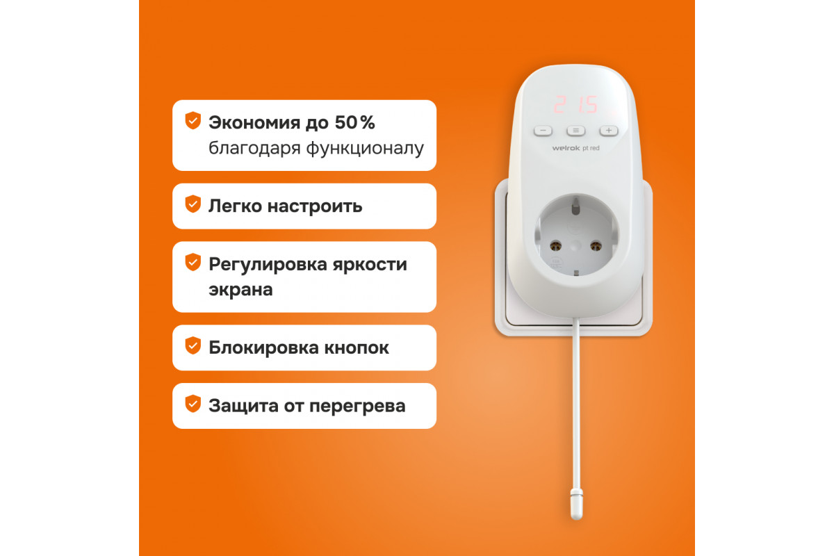 Розеточный терморегулятор Welrok pt red — это надёжное и функциональное решение для управления электрическими обогревателями и системами тёплого пола. Его простота установки, широкий набор функций и высокая степень безопасности делают его отличным выбором для создания комфортной и энергоэффективной среды в вашем доме или офисе.​