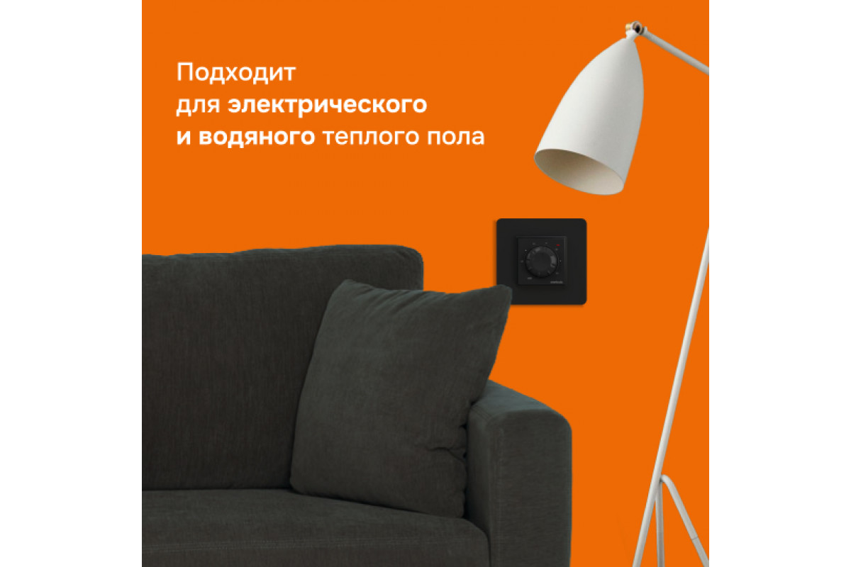 Устройство изготовлено из негорючего пластика и имеет степень защиты IP20, что обеспечивает безопасность при эксплуатации. Выносной датчик температуры пола длиной 3 метра входит в комплект поставки, обеспечивая точное измерение температуры.​