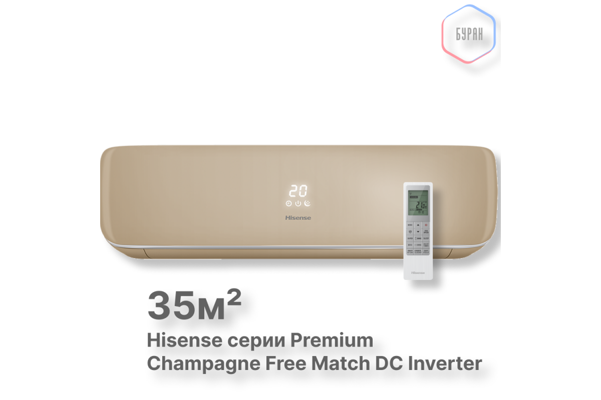 Выбирая Hisense Premium Champagne Free Match DC Inverter, вы получаете сочетание элегантного дизайна и передовых технологий. Премиальный цвет "Шампань" придаст изысканность любому интерьеру, а инверторная технология обеспечит энергоэффективность и тихую работу устройства.