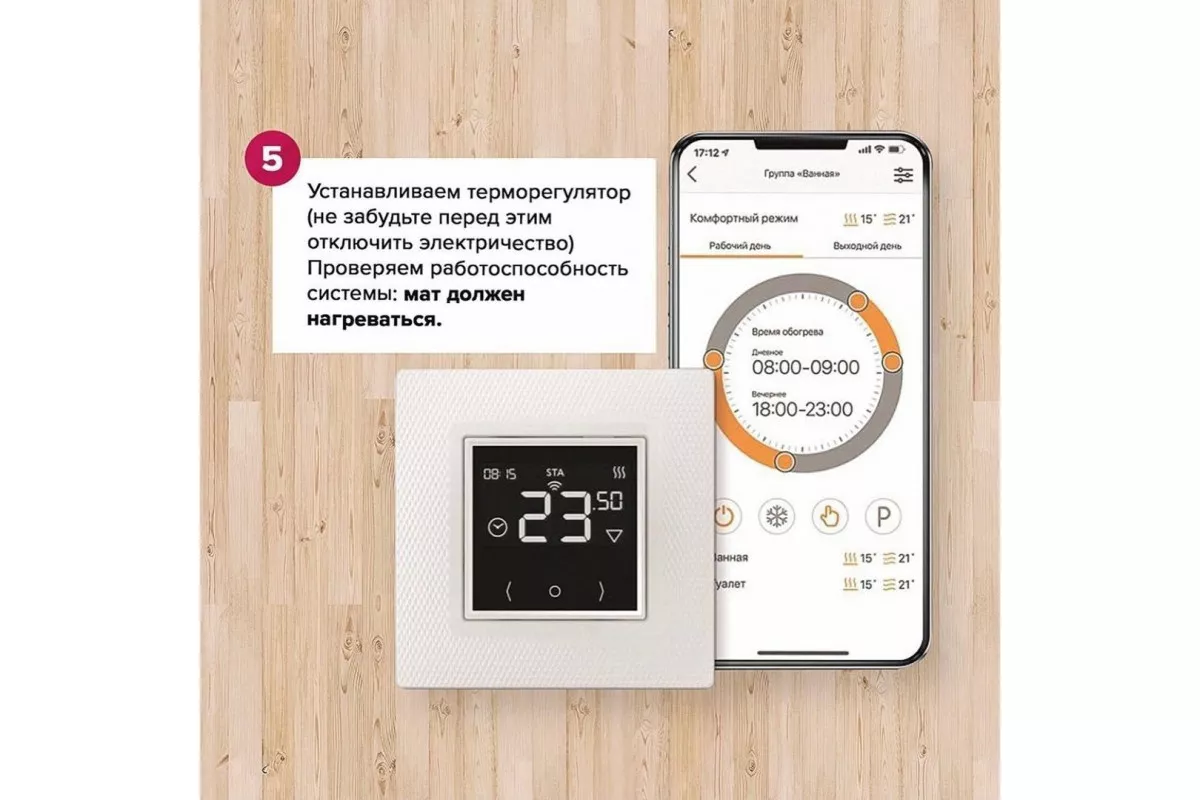 • Максимально быстрый монтаж – разложи и подключи терморегулятор (без монтажа соединений).