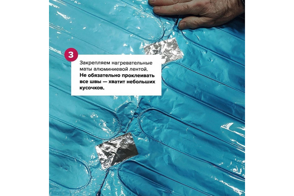 - Тонкий теплый пол на основе миниатюрного нагревательного кабеля, уложенного между слоями фольги.