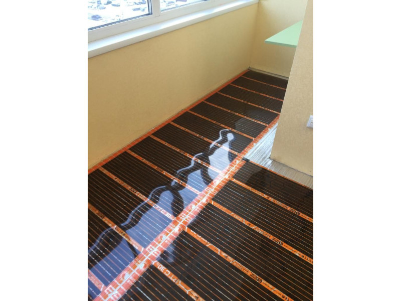 В конкретном случае обогрев пола был выполнен с помощью инфракрасного пленочного теплого пола EASTEC Energy Save PTC 220Вт (Ширина 80см) с эффектом саморегуляции на 30%, который позволяет значительно снизить вероятность перегрева пленки и напольного покрытия.