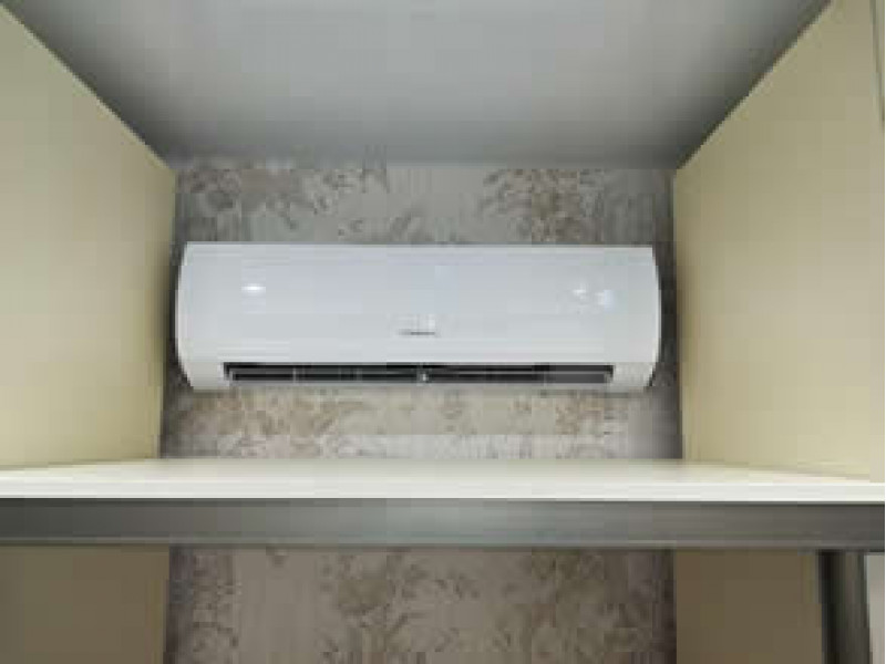 На месте выяснилось, что внутренний блок нужно поместить в нишу, размеры которой едва вместили его по ширине. Марку кондиционера, с нужными габаритами, долго подбирали.
