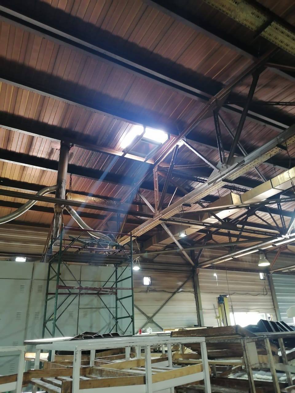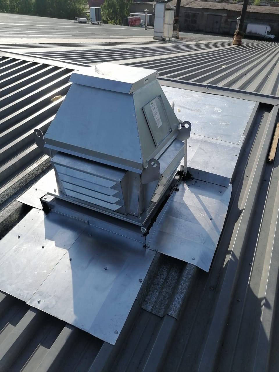 Было смонтировано два крышных вентилятора с гидроизоляцией кровли, а также установлены семь осевых вентиляторов. Дополнительно осуществлена прокладка питания и варка рам.