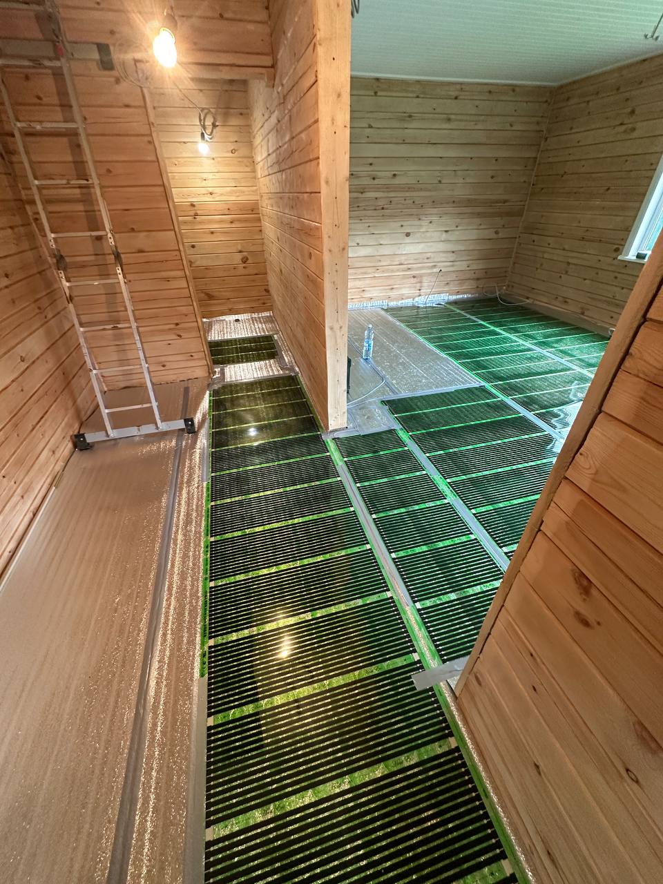 Инфракрасную пленку укладывали практически по всей площади дома, учитывая особенности планировки. Особое внимание уделили местам с высокой проходимостью и зонам, требующим дополнительного обогрева.
