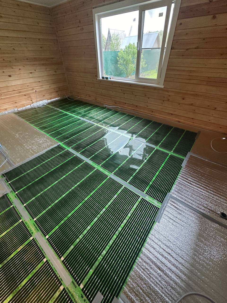 Для реализации проекта была выбрана инфракрасная пленка Russian Heat Green Heat Eco. Это передовое решение, которое обеспечивает равномерное распределение тепла по всей поверхности пола.