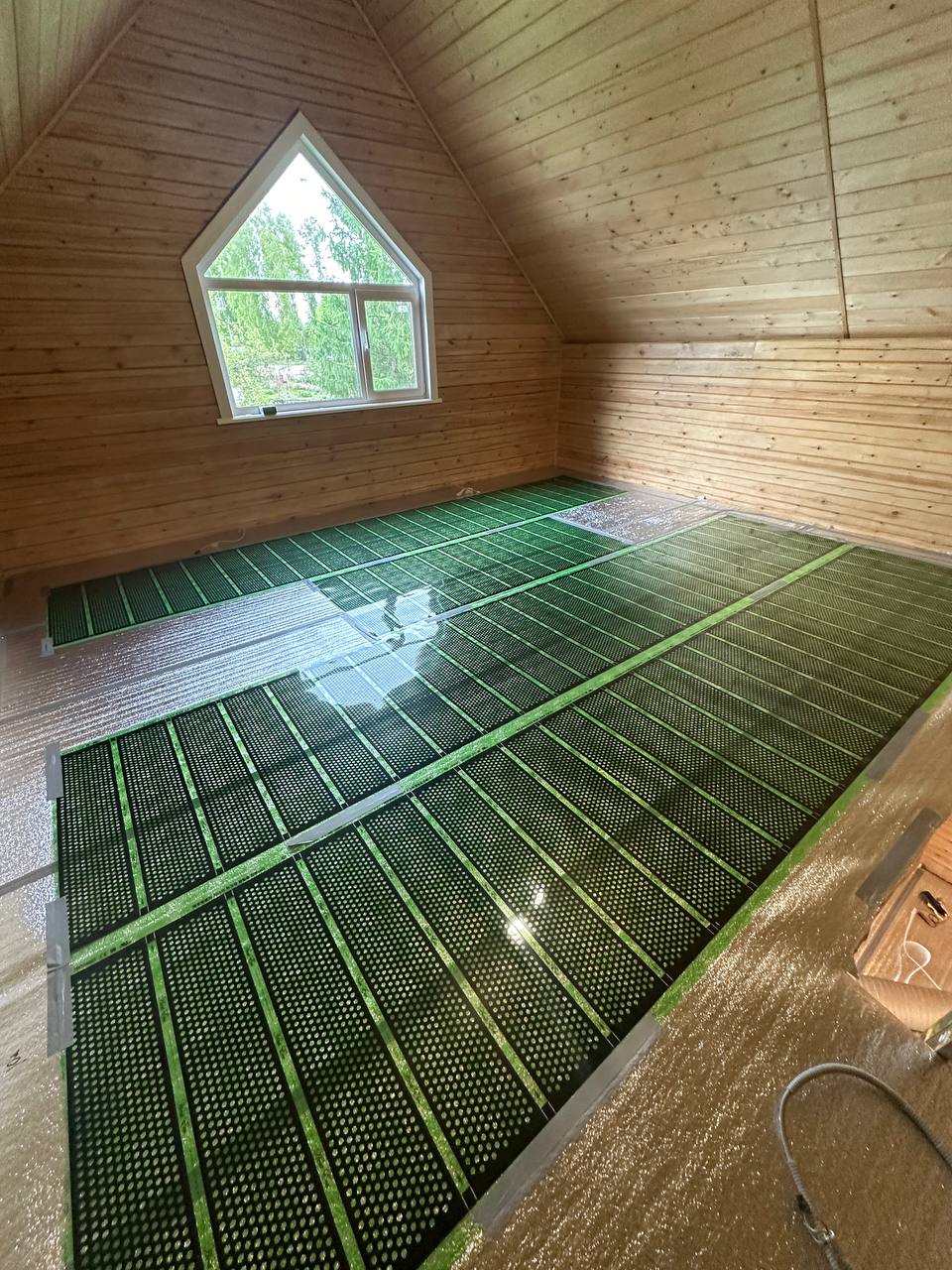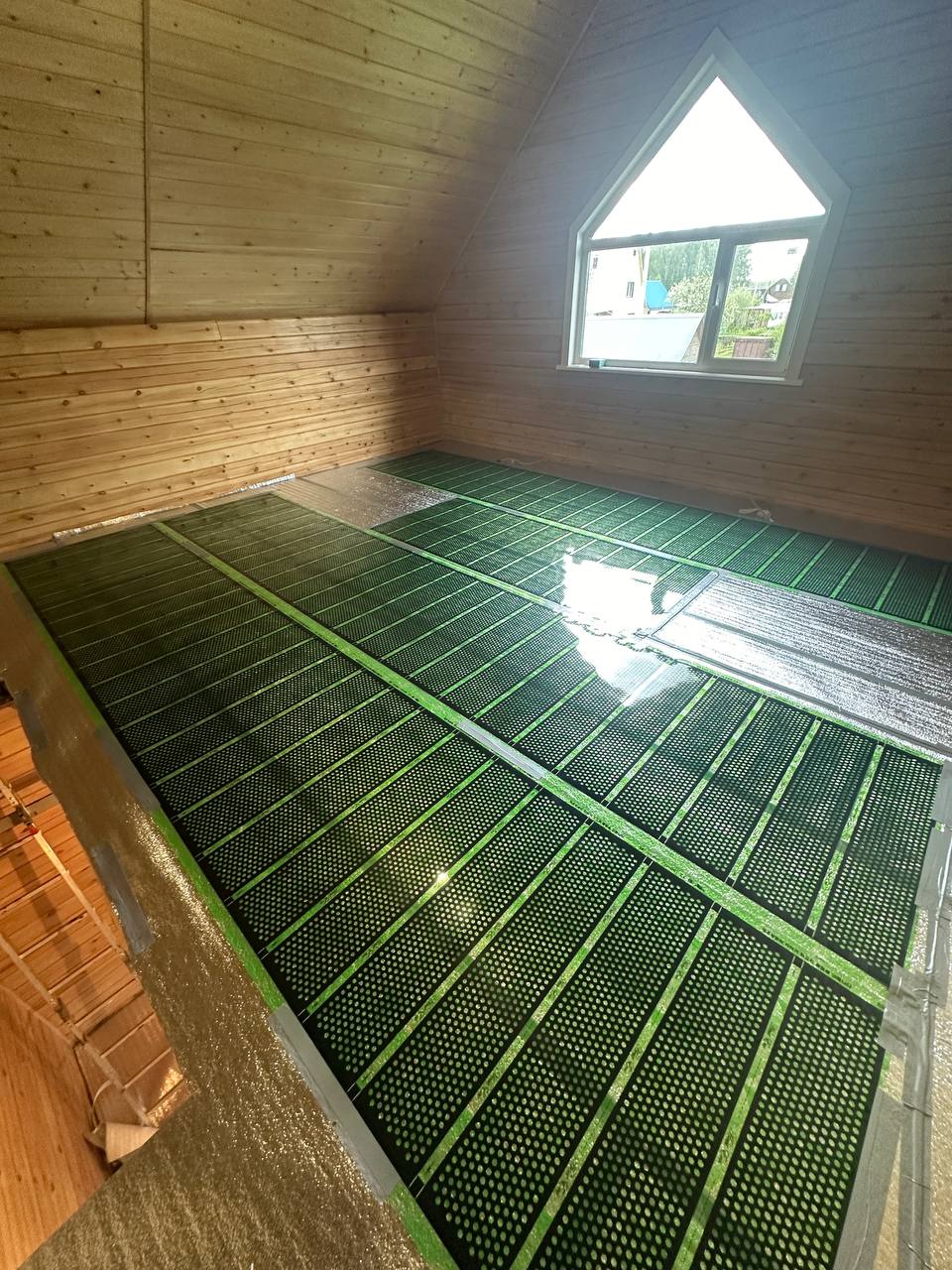Перед началом монтажа была проведена тщательная подготовка основания. Поверхность пола выровняли и очистили от мусора. Затем установили теплоотражающий материал, который помогает максимально эффективно использовать тепловую энергию.