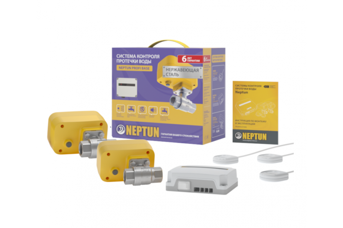 Система контроля протечки воды Neptun Base предназначена для своевременного обнаружения и локализации протечек воды в системе водоснабжения и отопления жилых домов, коттеджей, офисных зданий, магазинов. Система заблокирует подачу воды до устранения причин протечки и проинформирует о возникшей аварии звуковым и световым сигналами.