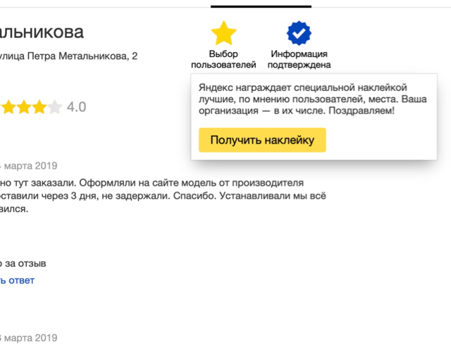 В очередной раз мы получаем знак внимания от Яндекс. Заслуженный выбор пользователей- это большая награда для нашего коллектива! В этот раз магазин в Краснодаре на Петра Метальникова получил долгожданную звезду. В интернет пространстве- это, своего рода, звание (или призвание).